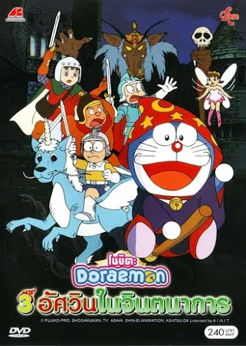 ภาพยนตร์ตอนยาวของซีรีส์ Doraemon ที่สร้างจากผลงานมังงะของ Fujiko F. Fujio เรื่องเริ่มต้นเมื่อ Nobita Nobi อยากมีความฝันแบบฮีโร่เหมือนอัศวินผู้กล้าหาญ จึงใช้ของวิเศษจาก Doraemon ที่สามารถ สร้างโลกในความฝันตามจินตนาการ ในโลกแห่งความฝันนั้น โนบิตะกลายเป็นอัศวิน และได้ออกผจญภัยในอาณาจักรแฟนตาซีร่วมกับเพื่อน ๆ ได้แก่ Shizuka Minamoto Takeshi Gouda (ไจแอนท์) Suneo Honekawa พวกเขาต้องช่วยปกป้องอาณาจักรจาก ราชาปีศาจ และกลายเป็น “สามอัศวินผู้กล้าหาญ” แต่ต่อมา โลกแห่งความฝันเริ่มผสมกับโลกความจริง ทำให้การผจญภัยครั้งนี้กลายเป็นเรื่องอันตรายจริง ๆ